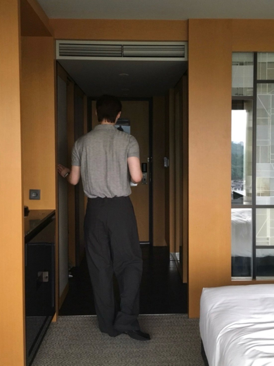 - ニットポロやジップニットをタックインし、付属ベルトを長めに垂らしてアクセントに。
